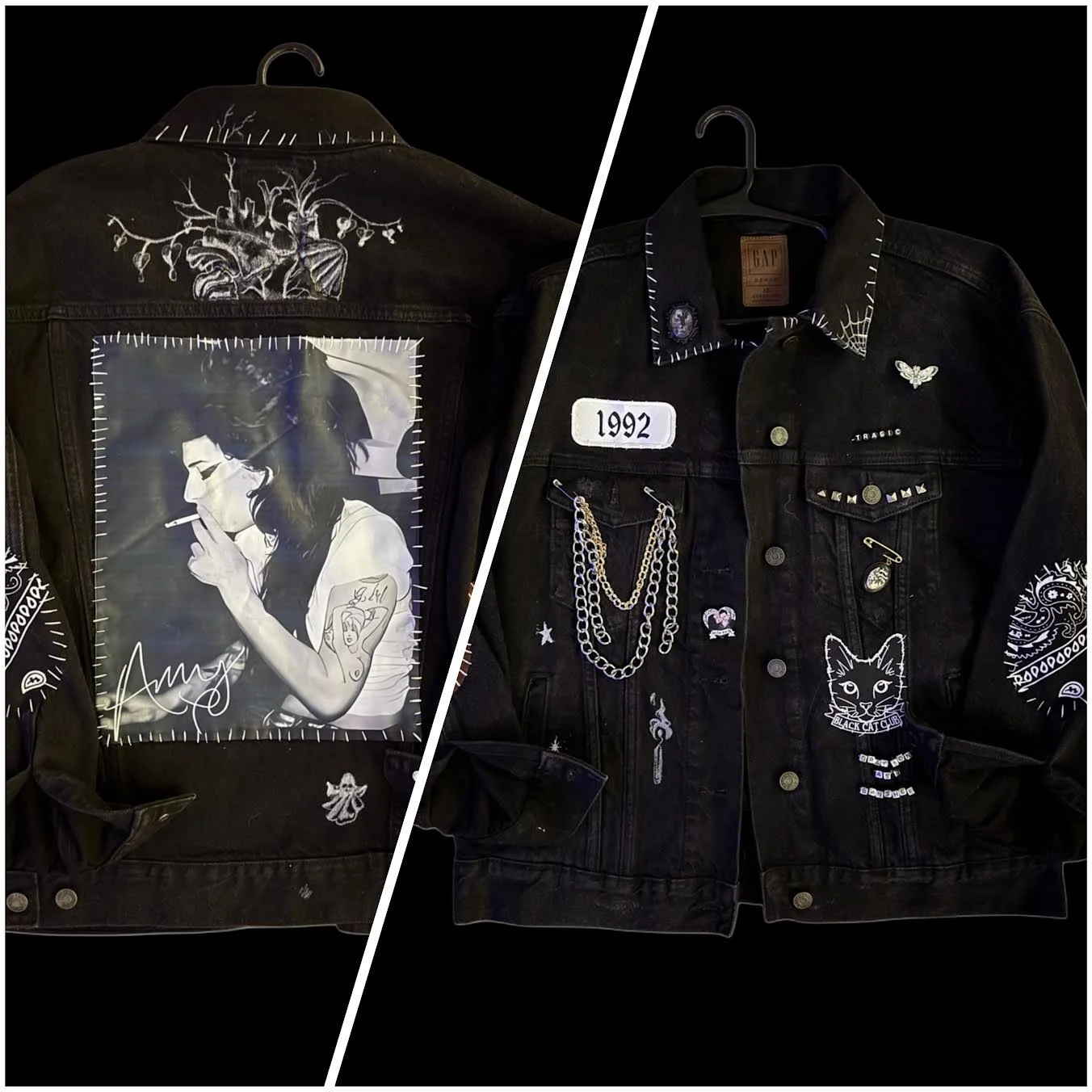 CUSTOM DENIM JACKETS ARE WHAT STARTED MY BUSINESS. I’VE HAD MY OWN FOR OVER 10 YEARS THAT I’VE ADDED TO A MILLION TIMES. PINS HERE, PATCHES THERE. SO MANY DIFFERENT ARTISTS. IT’S EVERYTHING ME