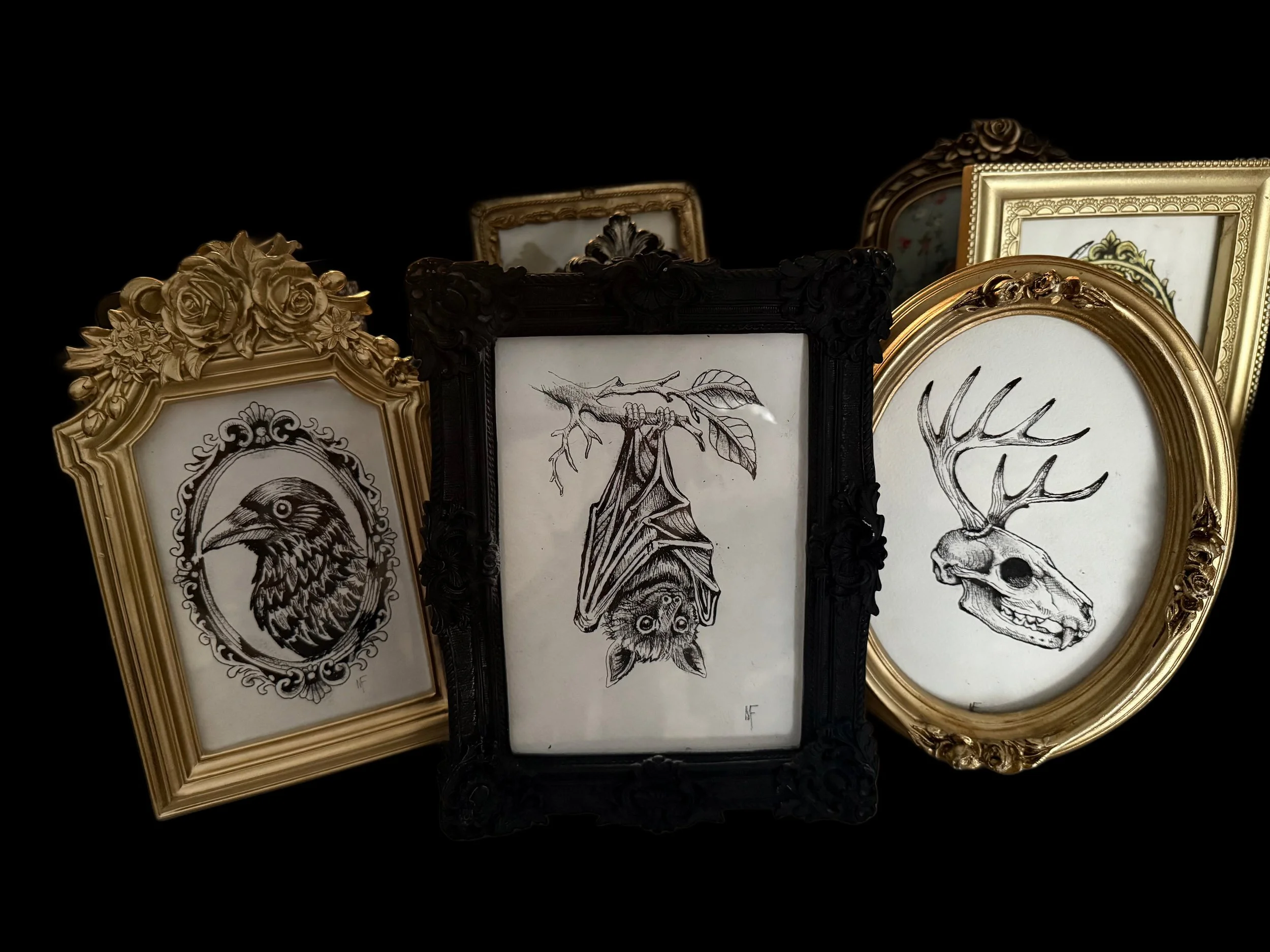 Categories: Select a Category Framed prints Holidaze Hats Flannels Bags Pins Prints Stickers Dog jackets Human Jackets Framed prints Hanging bat $40.00 Add To Cart Added! Cat skull with antlers $30.00 Add To Cart Added! Questions?Miranda FournierMfournier91@gmail.comRaleigh, NC 27615